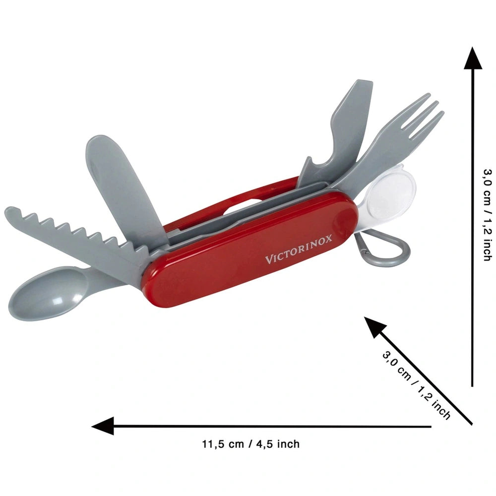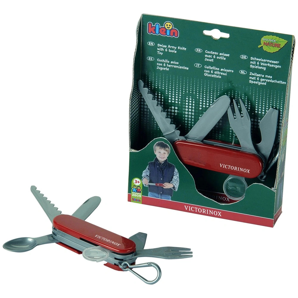 Introducing the Theo Klein - Victorinox Swiss Knife - Scouting, the ultimate pocket knife designed specifically for little adventurers and budding world explorers. This delightful toy captures the iconic design of the world-renowned Victorinox Swiss Army Knife, offering children a safe and engaging way to explore their surroundings. With its vibrant colors and realistic features, this toy knife is sure to ignite the imagination of young explorers, encouraging them to embark on countless adventures while learning essential skills.