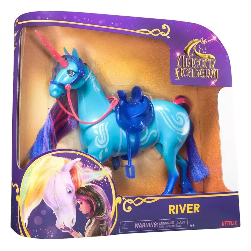 Introducing the Unicorn Academy River Unicorn Figure, a delightful addition to any child's toy collection that brings the enchanting world of Unicorn Academy to life. Inspired by the beloved NETFLIX animated series and the best-selling book series, this 11-inch River unicorn toy is designed to capture the hearts of young fans and ignite their imaginations. With its stunning details and interactive features, River is not just a toy; it's a gateway to a magical realm where friendship and adventure reign supreme.